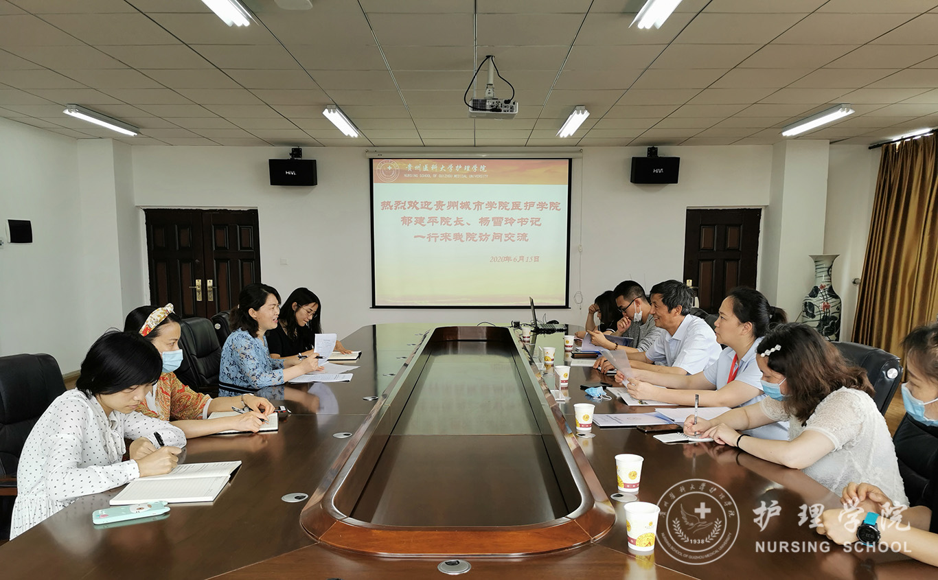 6月15日,贵州城市职业学院医护学院郁建平院长、杨雪玲书记一行七人来鸭脖交流学习,YABO鸭脖在百川楼5楼会议室召开座谈会热情接待了来访人员,会议由副院长刘志燕主持,教学科研管理科、护理学技能实验室、教研室等部门教师参加了此次交流。