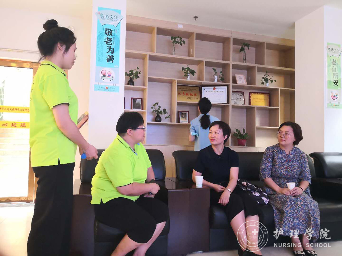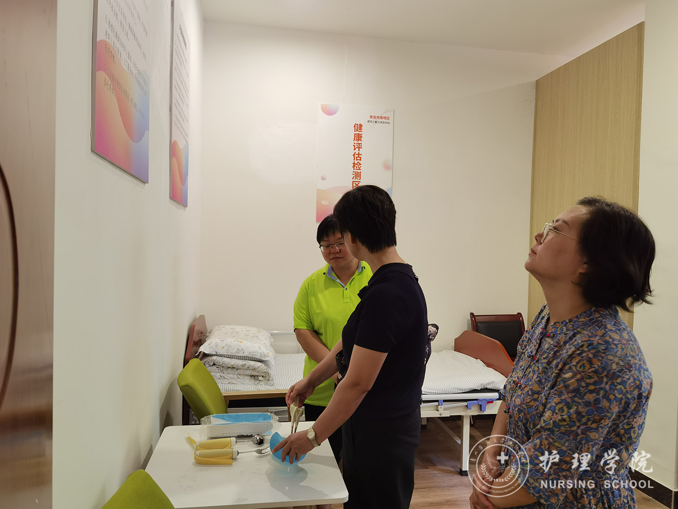 8月19日,学院党委副书记王秀红携护理学基础教研室主任熊吴燕及教研室教师王芸芸、王先美一行赴南明区油榨街道晚霞彩带老年人日间照料中心进行调研。