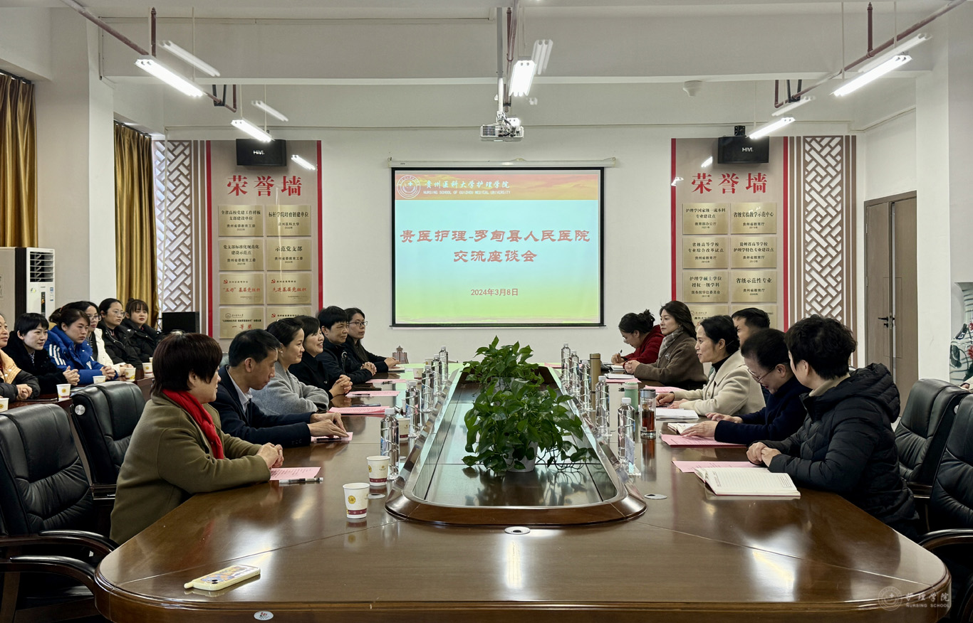 3月8日,罗甸县人民医院党委副书记、院长冉利梅,副院长胡秋艳、李兴桥,院长助理孟东江,工会主席蒙华瑜等一行27人到鸭脖就人才培养、就业需求、教学指导等进行交流。YABO鸭脖党委书记杨英、院长兼附属医院护理部主任李亚玲、党委副书记兼纪委书记何为、副院长王秀红、副处级组织员张黎及教职工代表参加了座谈会。座谈会由王秀红主持。