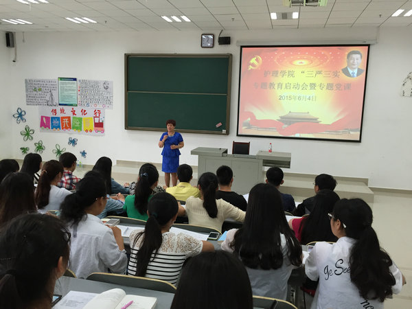 随后贾秀英书记又以“坚定理想信念、践行‘三严三实’”为题上了一堂生动而又深刻的专题教育党课。贾秀英书记从“三严三实”的提出时间和过程入手,着重论述了“三严三实”的精神要义和实质内涵;强调了修身律己、实在做事、老实为人的深刻内涵及重要意义,深入阐释了“三严三实”要求做人做事与权力责任之间的关系。并号召全院师生党员要学深悟透此次专题教育活动精神,进一步统一思想、以“三严三实”的标准严格要求自身,贯彻落实到各项工作、学习中,特别是明年的护理专业认证工作,要把专业认证当作学院发展的良好机遇,齐心协力将YABO鸭脖规划好、发展好。践行“诚于己,忠于群,敬往思来”的校训,做无愧于“贵医人”称号的贵医人。为实现我校“建设成为具有明显特色、西部一流、在全国有一定影响的高水平医科大学”的目标作出应有的贡献。