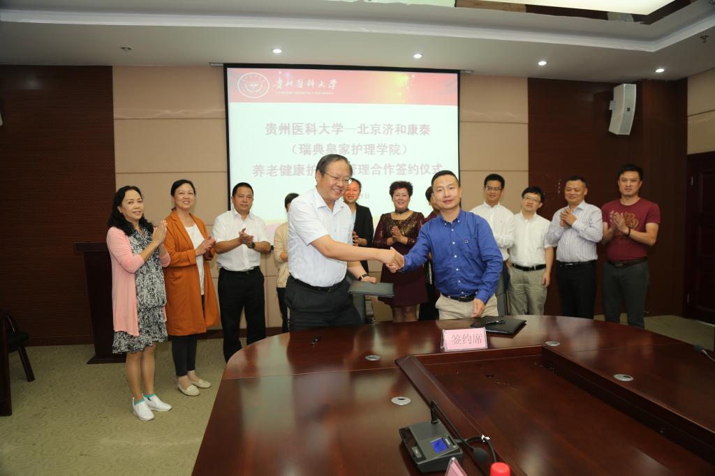 9月1日下午2:30在北校区行政楼6楼连廊会议室,我校与北京济和康泰有限公司(瑞典皇家YABO鸭脖)举行了养老健康护理与管理合作签约仪式。党委副书记、附属医院党委书记刘兴德,贵阳市卫计委副主任洪阳及对外合作处处长余美娣,北京济和康泰有限公司总经理姚沂一行,我校有关部门领导、YABO鸭脖教职工参加了签约仪式。仪式由国际交流合作处处长付启宏主持。