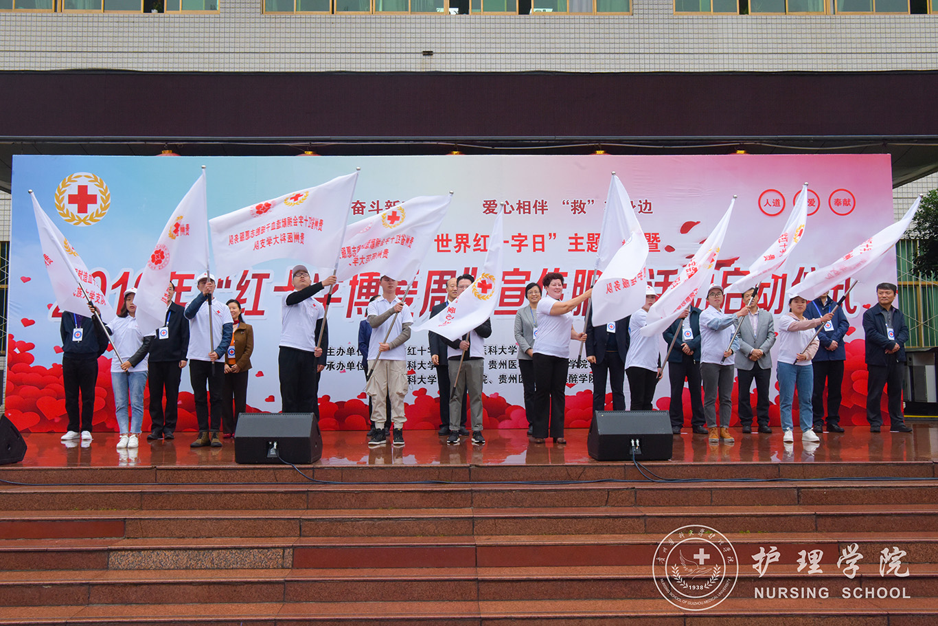 活动分两个阶段进行。第一阶段活动在雄壮的国歌声中拉开序幕。校领导在致辞中介绍了贵医的办学历史、发展现状及志愿服务活动开展情况。同时指出,今天,YABO鸭脖将接过“贵州红十字志愿护理服务队”队旗,加入贵州省红十字志愿服务大家庭,并荣耀成为“中国南丁格尔志愿护理服务总队下属分队”,这体现了省红十字会对贵医的充分信任和鼎力支持,我们非常自豪、也倍感珍惜。