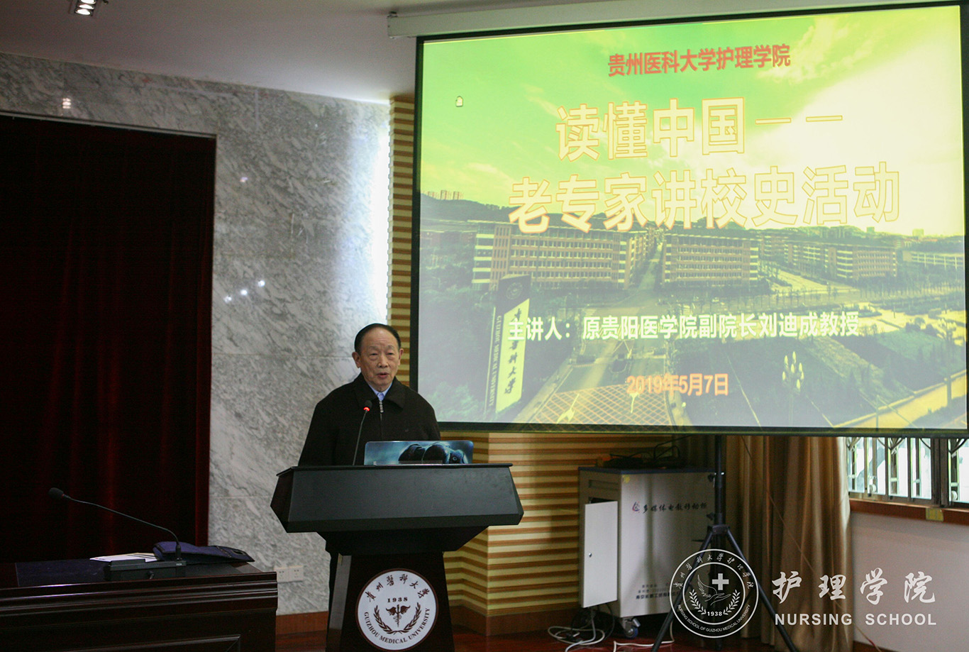 为了教育引导青年学生坚定“四个自信”,增强对中国特色社会主义的思想认同、情感认同和价值认同,5月7日,YABO鸭脖在北校区道德讲堂开展了“读懂中国—老专家讲校史”活动。活动特邀原贵阳医学院副院长刘迪成教授作报告。YABO鸭脖党委书记杨英、院长贾秀英、副院长刘志燕及有关教师、研究生、本科生同学聆听了报告,活动由YABO鸭脖党委副书记王秀红主持。