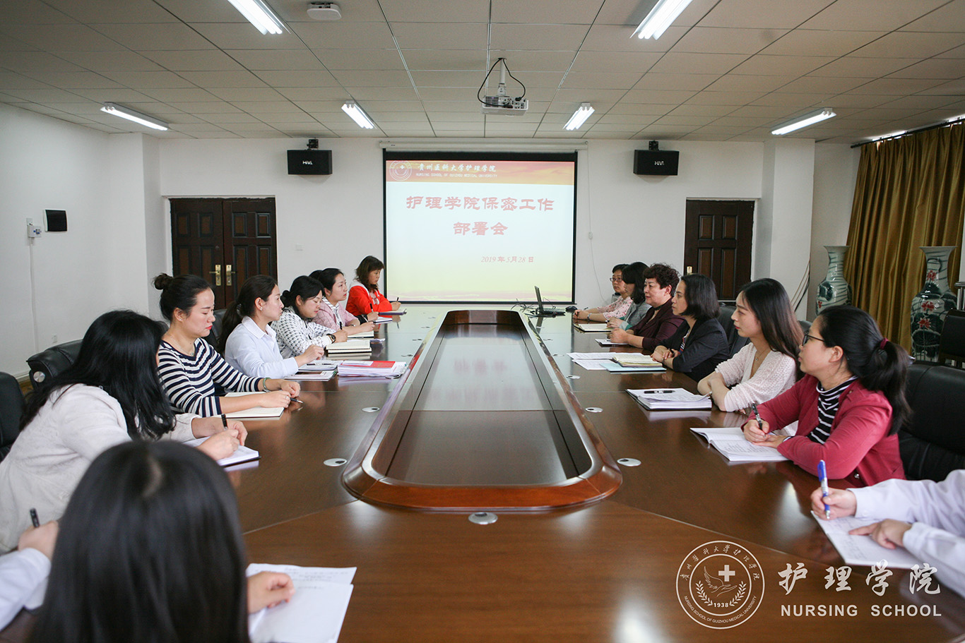 5月28日,YABO鸭脖在南校区百川楼五楼会议室召开会议传达学校2019年保密工作会议精神。学院院长贾秀英主持会议,全院教职工参会。