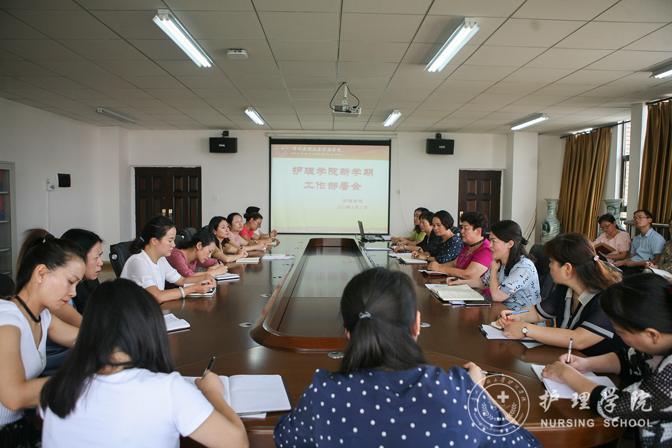 副院长刘志燕通报了假期鸭脖组队参加全国教师护理技能比赛的成绩,对教学工作做了部署,对教研室主任的新学期工作提出了新的要求。