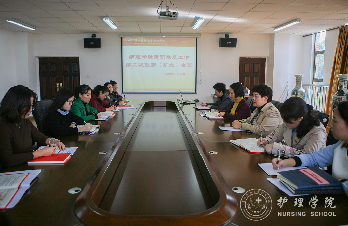11月15日,YABO鸭脖2019年第二次意识形态工作联席(扩大)会议在南校区百川楼5楼会议室召开。院领导班子成员,副科级以上干部,全体辅导员、班主任,部分教师代表参加了会议。本次会议特邀马克思主义学院专职教师禹辉映参加并做交流发言。会议由院党委书记杨英主持。