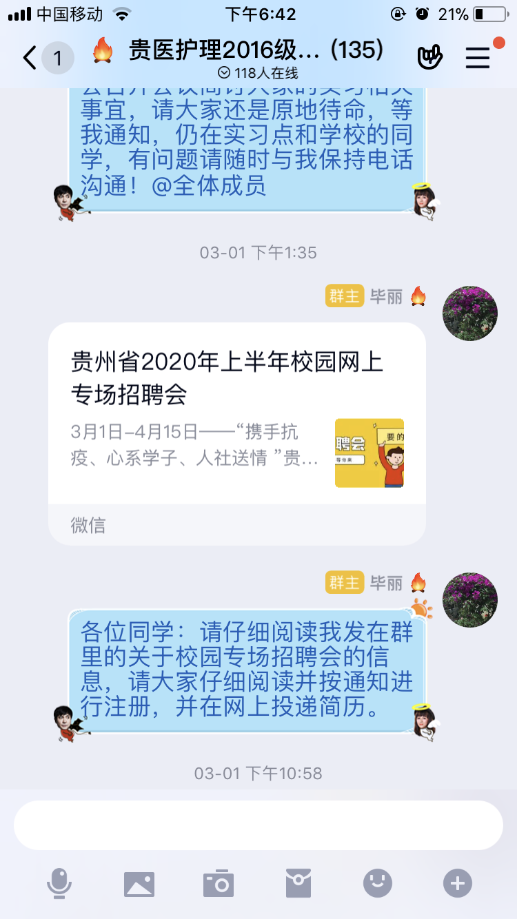 结语:辅导员们默默付出,辛勤奋斗在工作岗位,尽管疲惫不堪但毫无怨言,只盼同学们的一声声“平安”,他们用心坚持、用爱付出、用情守护,构筑守护学生的严密防线。我们坚信,疫情纵然无情,爱却永驻身边,没有哪个寒冬不可逾越,没有哪个春天不会来临。中国加油!武汉加油!