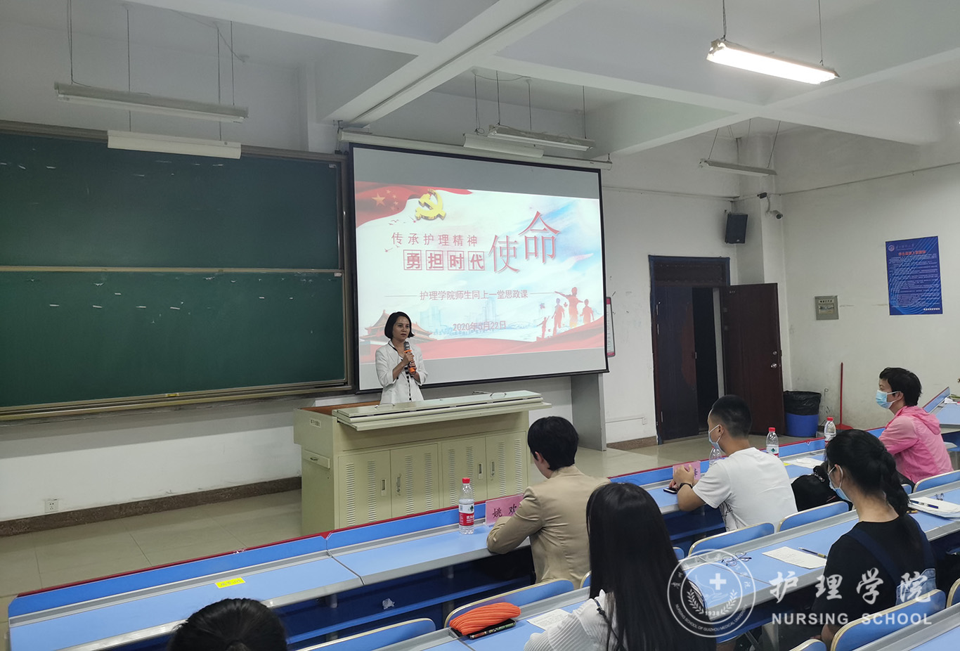 5月22日,YABO鸭脖在北校区2201教室以“传承护理精神,勇担时代使命”为主题开展了师生同上一堂思政课活动,采取线上线下同步教学,腾讯会议直播的形式进行。本次思政课邀请了鸭脖优秀毕业生援鄂英雄姚欢、黄秀峰分享了他们的抗疫故事。活动由院党委副书记王秀红主持,学院全体教师、学生党员、入党积极分子参加。