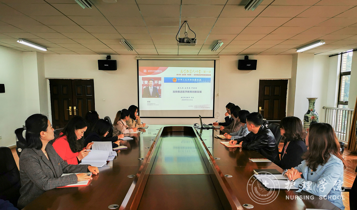 讲座结束后,YABO鸭脖教职工党支部开展了政治理论学习活动,组织教职工党员学习了《中共贵州省委教育工委关于全面推进高等学校“五级书记抓党建”的指导意见》、《习近平谈治国理政》第三卷之四“坚持以人民为中心”、《习近平在全国抗击新冠肺炎疫情表彰大会上的讲话》。活动结束后,杨英对讲座及政治理论学习活动进行了总结,她指出,吴岩司长的报告高屋建瓴、系统全面、内容丰富,有助于我们全面把握和领会国务院办公厅《关于加快医学教育创新发展的指导意见》精神,吴岩司长的报告也指明了当前医学教育的中心任务和改革方向。杨英强调,全体教师党员要以习近平新时代中国特色社会主义思想为指导,弘扬抗疫精神,结合学习内容和岗位实际进行系统思考、深刻领会、贯彻落实,努力为护理教育事业的改革发展和开创医学教育工作新局面作贡献。