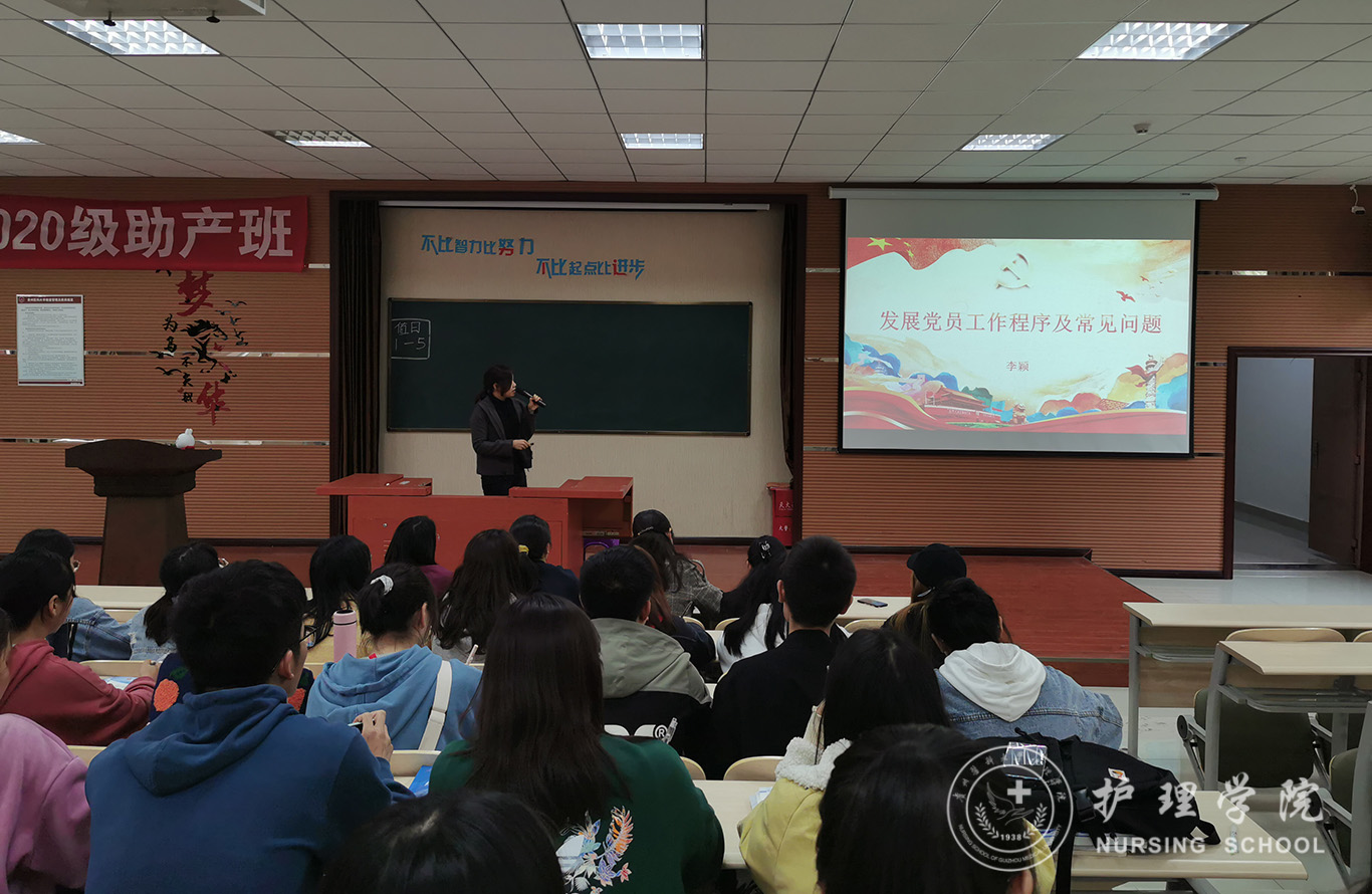 学院办公室副主任原学生第一党支部书记李颖老师以“培养合格党员、充分发挥作用”为题介绍了党支部书记的职责,工作内容,解读了《YABO鸭脖学生党支部标准化建设工作》的文件要求,并就发展党员工作程序及常见问题,从几个阶段、对应材料、归档要求、注意事项等方面进行了详细介绍。