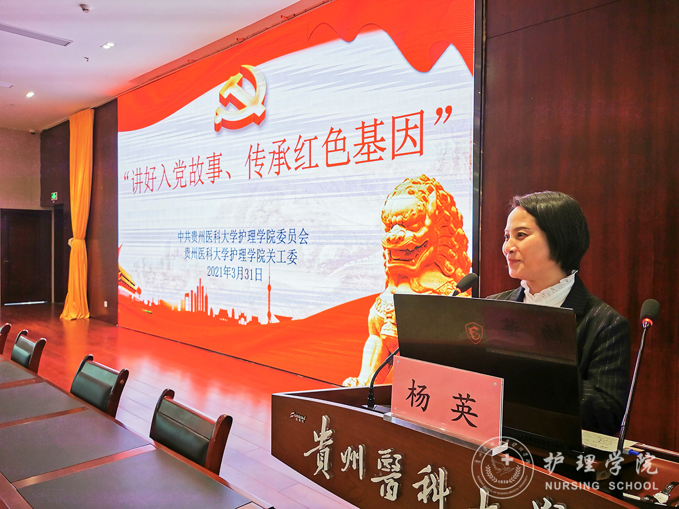 贾秀英老师给我们上了一堂精彩的党课,对青年学子寄予了殷切的期望,呼吁我们要用党的光荣传统和优良作风坚定信念、凝聚力量,自觉传承红色基因,树立远大理想,时刻牢记党和人民对我们的重托,用自己的故事为“百年贵医”谱写壮丽华章。