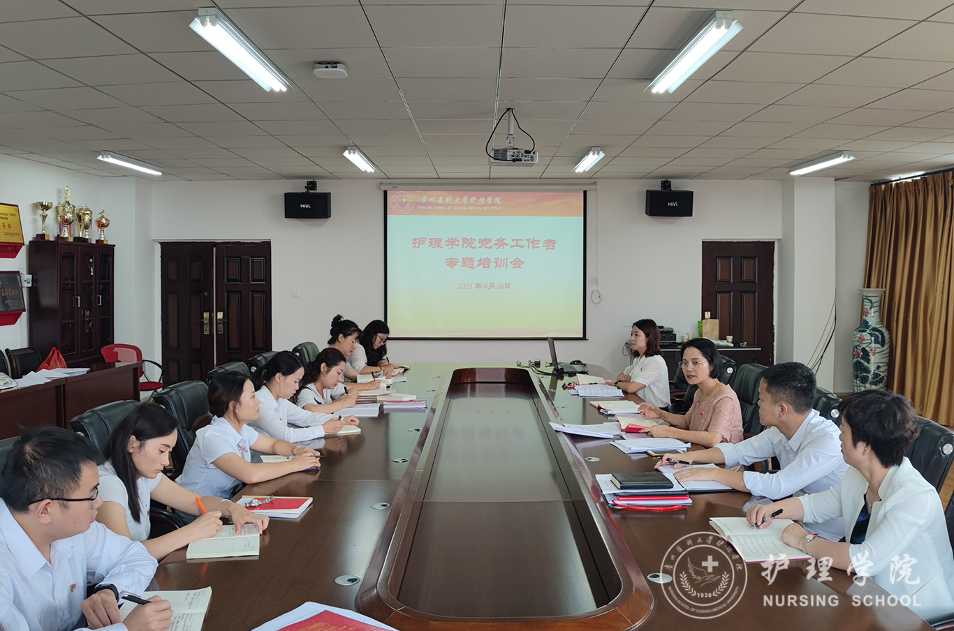 为进一步落实学校党建工作成效考核工作,完善学院党建各项工作制度,促进党建工作高质量发展,8月26日,YABO鸭脖在南校区百川楼五楼会议室召开党建工作会暨党务工作者专题培训会。学院党委委员、党支部书记和支委、带班辅导员参加会议,会议由学院党委书记杨英主持。