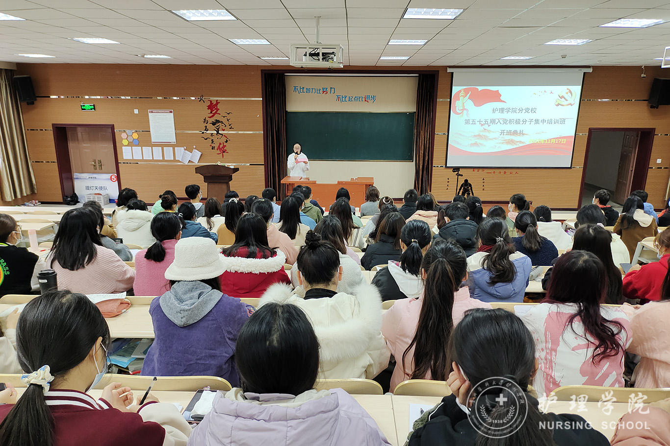 开班典礼在庄严的国歌声中拉开序幕。首先2020级助产学唐梦蝶代表全体入党积极分子承诺,将以积极、认真、严肃的态度对待此次学习,深刻学习党的基础理论知识,在思想上与党组织靠拢,争取早日加入中国共产党。接着,杨英对全体学员提出四点要求,一是要坚定信念,志存高远;二是要认真学习,提高修养;三是要端正入党动机,树立良好价值观;四是要严于律己,知行合一。让自己不单单成为一名合格的大学生,也能成为一名合格的共产党员。