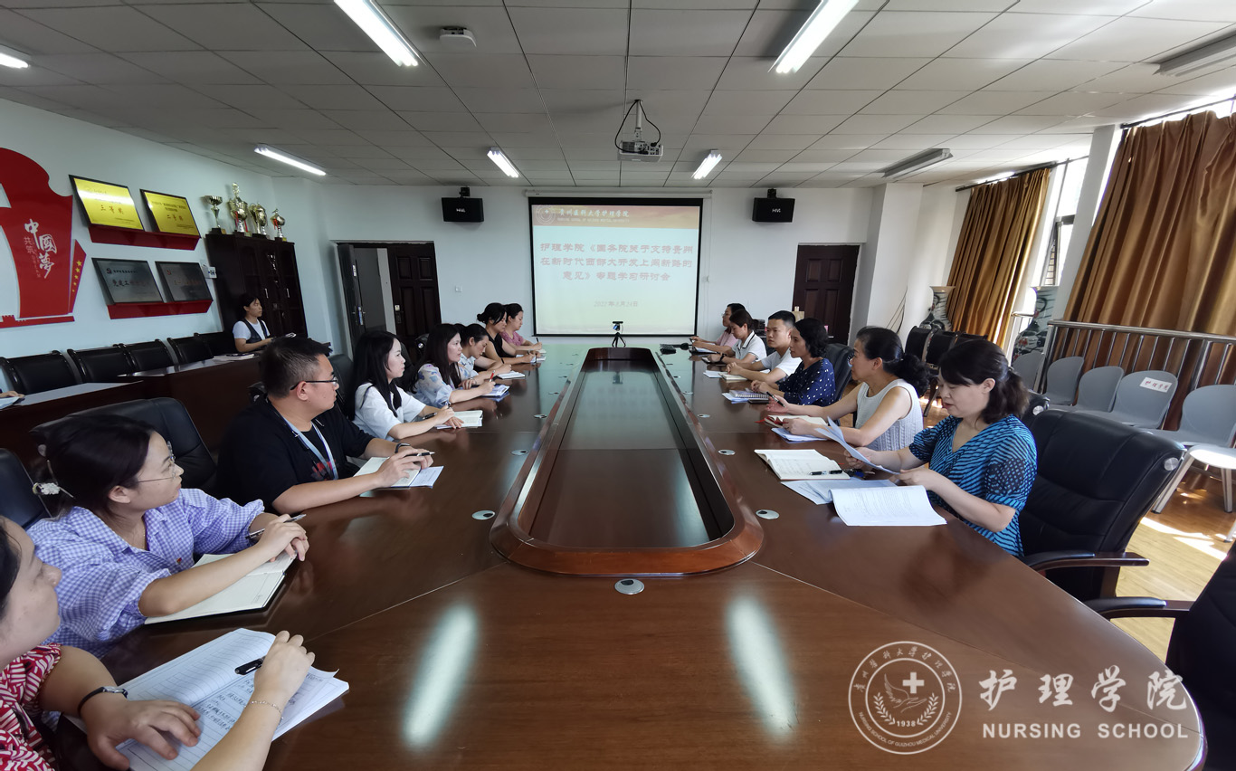 8月24日,YABO鸭脖在南校区百川楼五楼会议室召开全院会议,专题学习研讨《国务院关于支持贵州在新时代西部大开发上闯新路的意见》(以下简称《意见》)。会议由院党委书记杨英主持,全体教职员工参会。