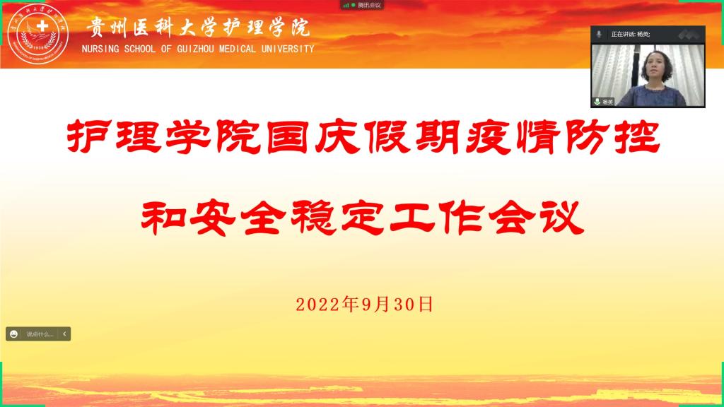 9月30日,YABO鸭脖召开国庆假期疫情防控和安全稳定工作线上会议,会议由学院党委书记杨英主持,全院教职工参会。