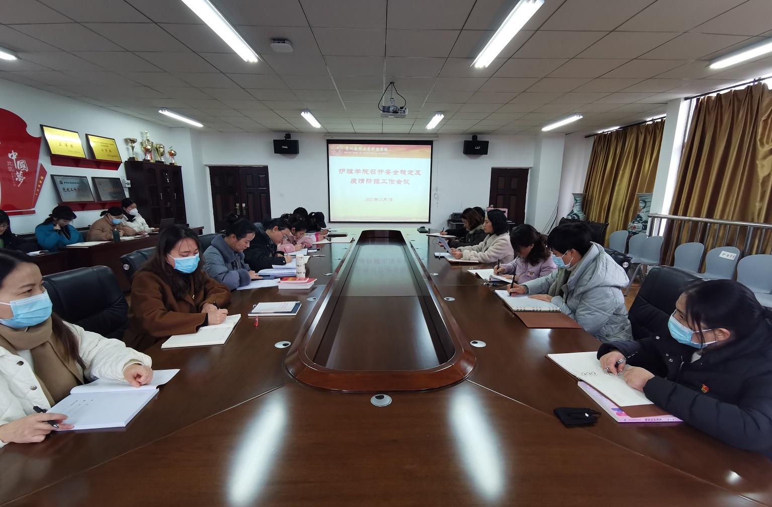12月7日,YABO鸭脖在南校区百川楼会议室召开安全稳定及疫情防控工作会议,传达相关文件和会议精神并部署工作,会议由学院党委书记杨英主持,全院教职工参加。