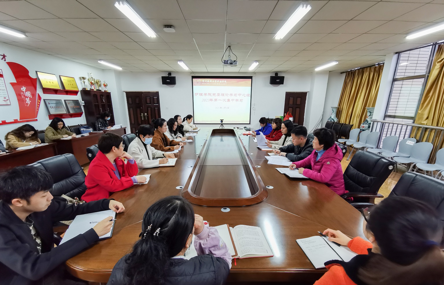 为深入学习贯彻习近平新时代中国特色社会主义思想和党的二十大精神,高质量开好学院党委领导班子民主生活会,3月6日,YABO鸭脖在南校区百川楼五楼会议室开展党委理论学习中心组2023年第一次集中学习研讨。院领导班子成员、副科级以上干部、党支部书记和全体辅导员参加,会议由学院党委书记杨英主持。