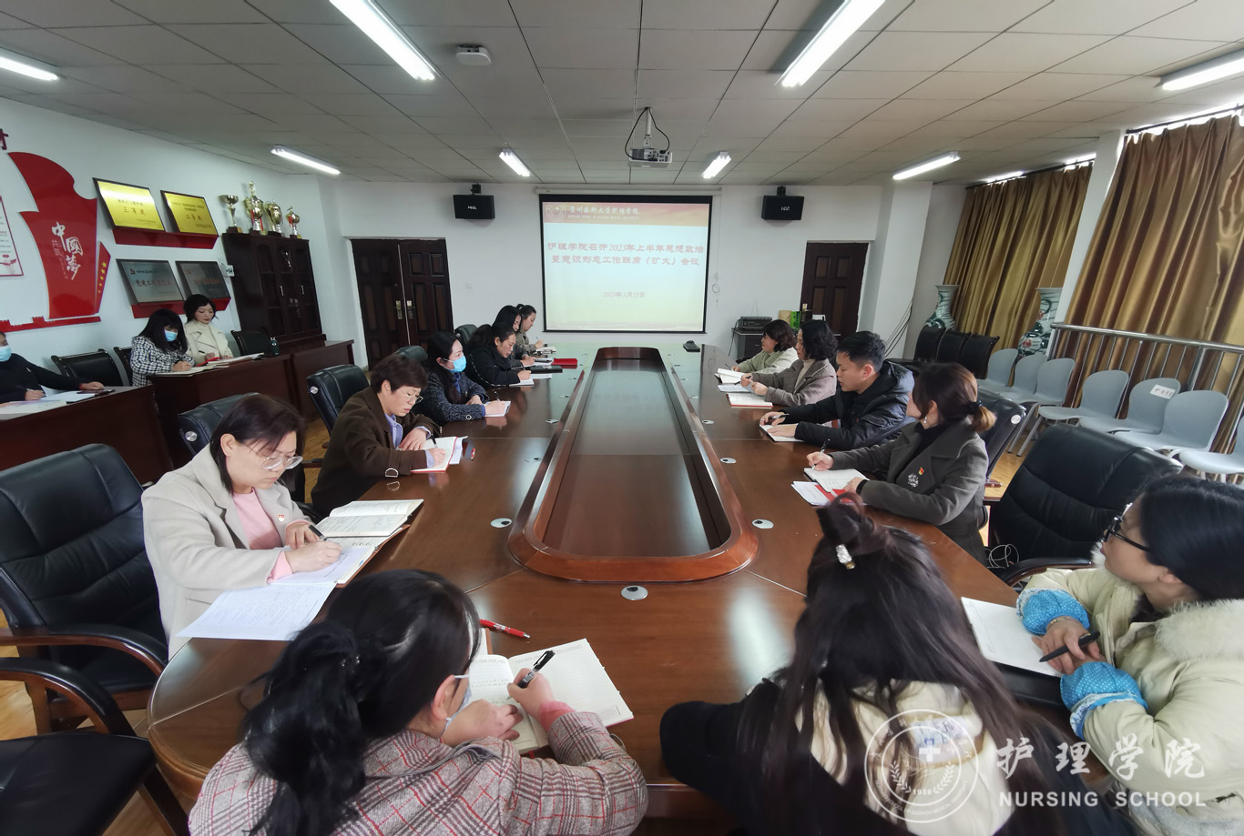 3月29日,YABO鸭脖在南校区百川楼5楼会议室召开2023年上半年意识形态工作联席(扩大)会议。学院领导班子成员、副科级以上干部、教研室主任、党支部书记、辅导员、教师代表参会,会议由学院党委书记杨英主持。