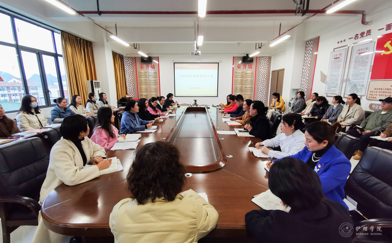 1月15日,YABO鸭脖在云漫湖校区酬勤楼六楼会议室召开期末全院大会总结部署工作,会议由学院党委书记杨英主持,全体教职工参会。