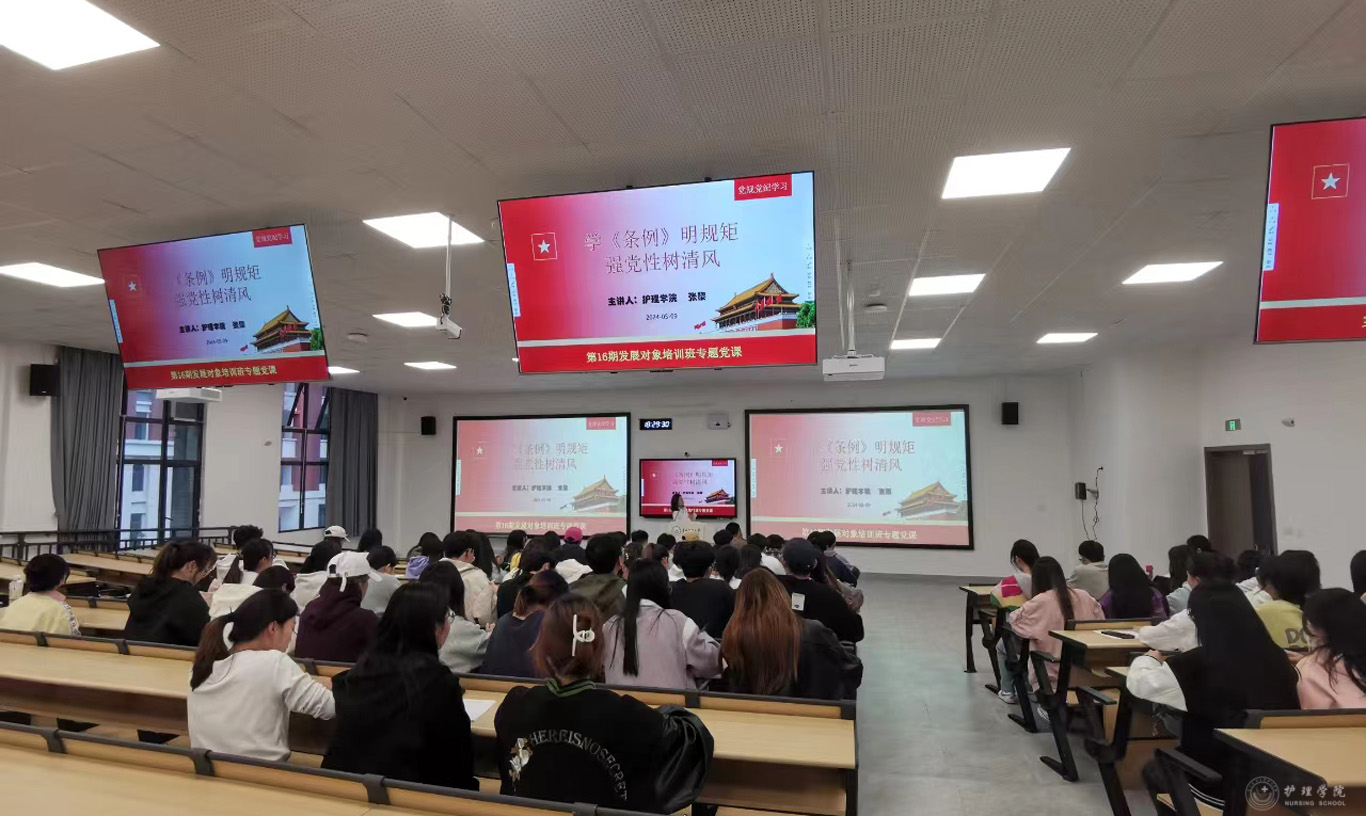 张黎以《学<条例>明规矩,强党性树清风》为主题,从《中国共产党纪律处分条例》的重要性、修改历程及重点修改内容作了阐述,希望发展对象学员要认真学习《条例》,遵守党纪党规、校纪校规,提高免疫力,激发战斗力,以实际行动向党组织靠拢。