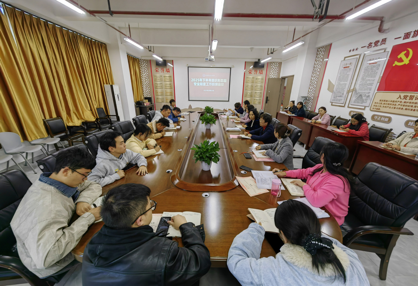 10月22日,YABO鸭脖在云漫湖校区酬勤楼六楼会议室召开2025年下半年意识形态暨安全稳定工作联席会议,会议由学院党委书记杨英主持,学院党政领导班子、副科级以上干部、教研(实验)室主任、各党支部书记和全体辅导员参会