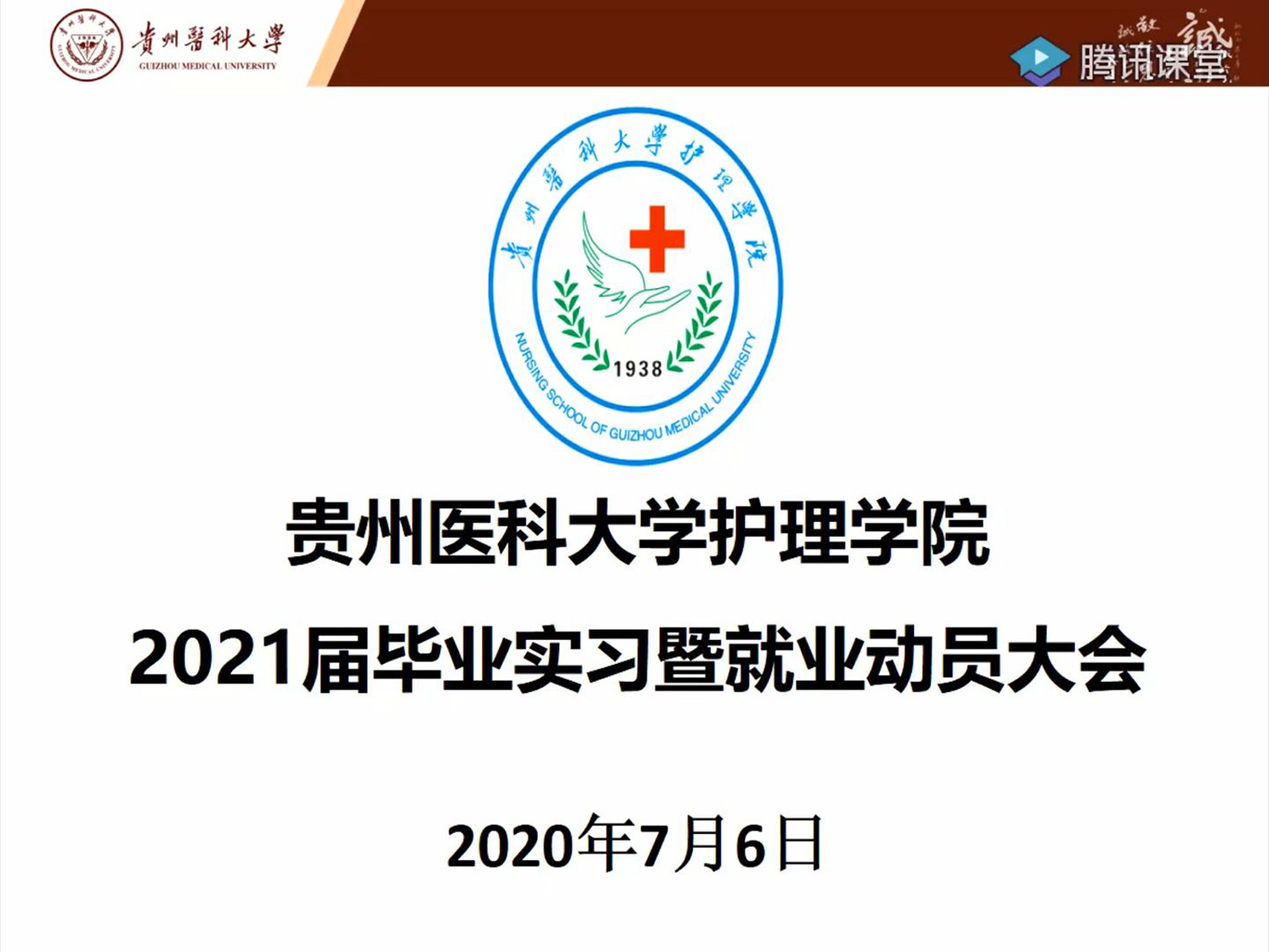 7月6日,YABO鸭脖通过腾讯课堂召开了2021届护生毕业实习暨就业动员大会。YABO鸭脖党委书记杨英、党委副书记王秀红、副院长刘志燕,2017级本科、专升本辅导员及2017级护理本科、专升本全体同学550余人参加了动员大会。会议由YABO鸭脖生产实习科科长柳忠燕主持。
