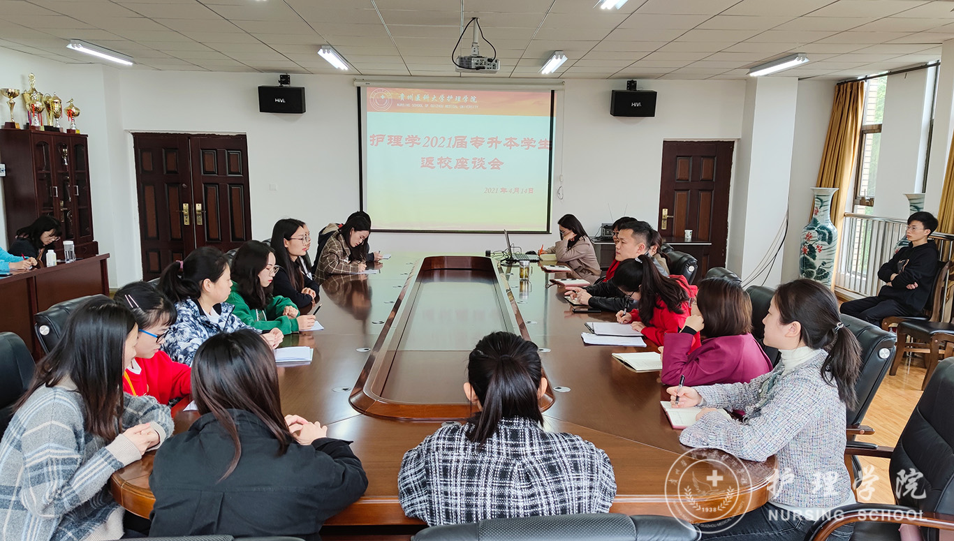 4月14日,为切实做好鸭脖2021届护理学专升本毕业生日常管理工作,推进专升本毕业生就业管理,YABO鸭脖在南校区百川楼五楼会议室召开了2021届专升本毕业生返校后第一次师生座谈会。YABO鸭脖党委副书记何为、正科级组织员曾敏、团委副书记王晓玲、学生科副科长毕丽、各带班辅导员以及各班学生干部参加了本次座谈会。
