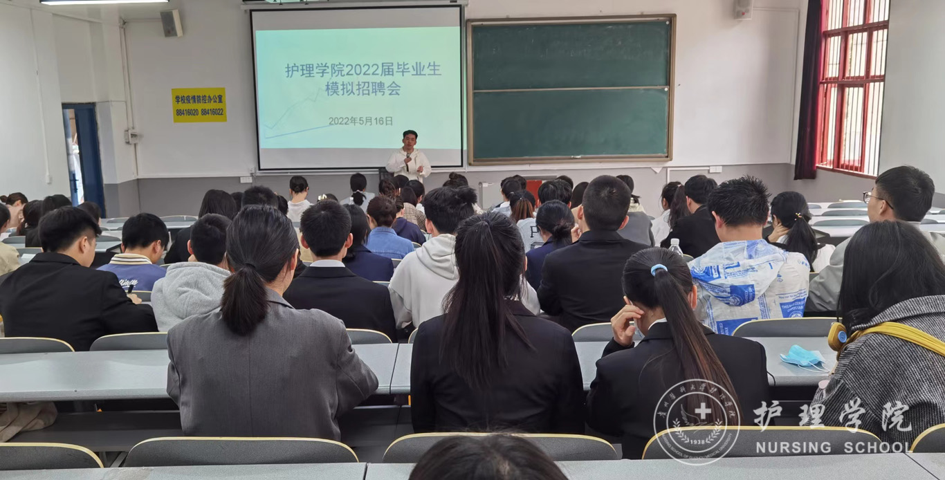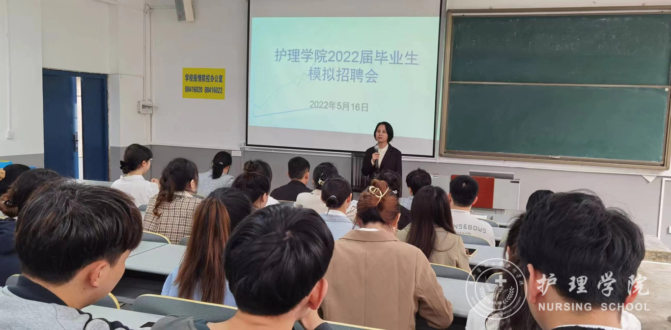 5月16日,为提升鸭脖2022届毕业生的求职竞争力和求职成功率,YABO鸭脖在北京路校区普教八举办了2022届毕业生模拟招聘会。学院党委书记杨英、党委副书记兼纪委书记何为、护理人文教研室副主任张仁莉、妇儿科护理学教研室副主任刘林敏、学生管理科副科长毕丽以及百余名2022届毕业生参加了本次模拟招聘会,会议由毕业班辅导员李杏春主持。
