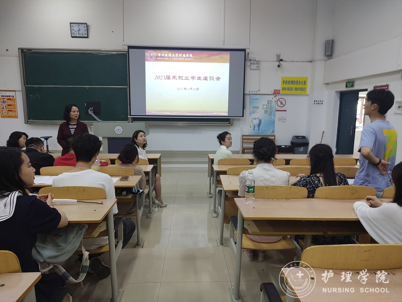 5月18日,为鼓励2023届毕业生积极就业,引导毕业生树立正确的就业观念,YABO鸭脖在北校区4101教室召开2023届未就业学生座谈会。YABO鸭脖党委书记杨英、副院长刘志燕、副处级组织员张黎、全体辅导员及部分2023届未就业毕业生代表参加了此次座谈会,会议由正科级组织员曾敏主持。