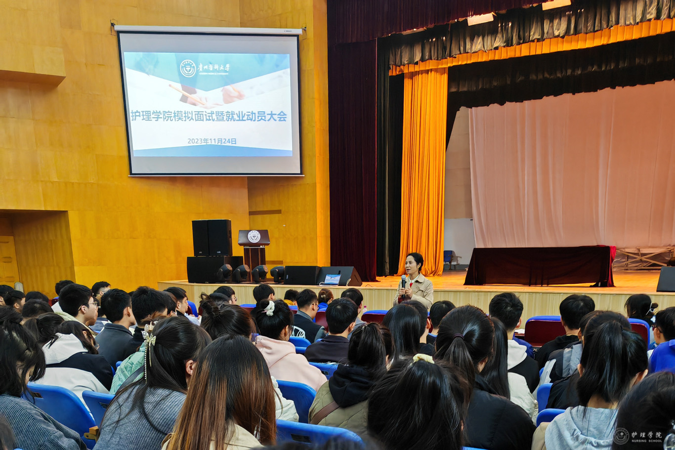 11月24日,为引导2024届毕业生树立正确就业观,增强求职竞争力,YABO鸭脖在北校区礼堂举办了模拟面试暨就业动员大会。YABO鸭脖党委书记杨英、副处级组织员张黎、毕业班辅导员毕丽和刘妍、学院部分辅导员出席并担任就业指导老师。