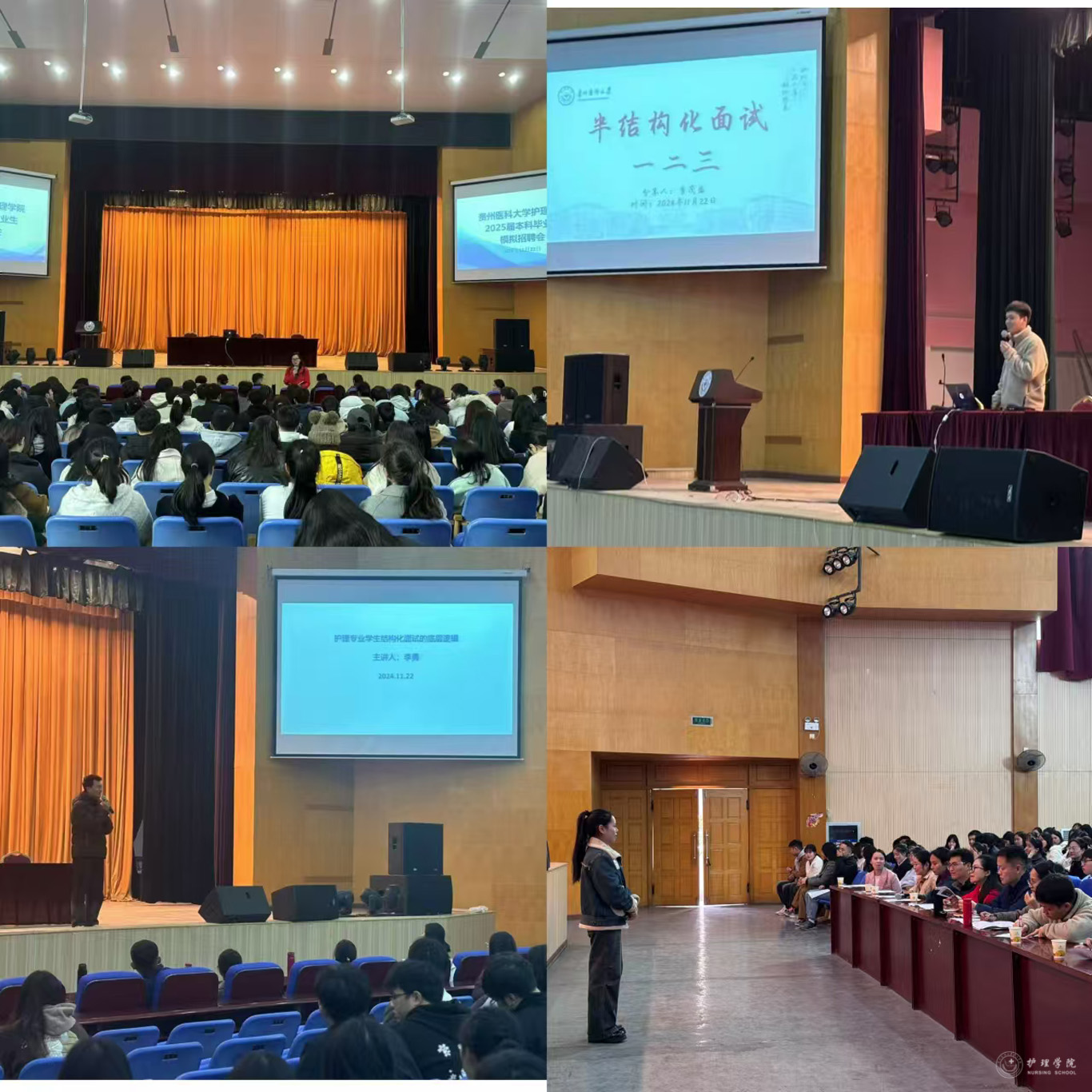 当天下午,学院还在礼堂举办了模拟招聘会,6名“应聘者”依次上台,通过自我介绍、现场作答等环节充分展示了自己的才华和潜力。会上,学院辅导员李茂盛、李勇分别针对“半结构化面试”以及“结构化面试”的面试技巧以及注意事项为同学们作了面试指导。最后,杨英结合面试的仪容仪表、语言表达、自信心培养、亲和力展现等方面作总结讲话,勉励在座的同学积极准备,用必胜的信心迎接后面的求职挑战。下一步,学院将继续引导毕业生树立正确的就业观念,提早进行职业规划,促进学生高质量就业。