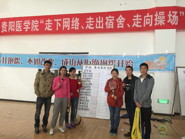 为了响应大学生“走下网络、走出宿舍、走向操场”主题群众性课外体育锻炼活动,学校于4月9日中午1:00在花溪校区体育馆二楼开展羽毛球接力赛。经过前期选拔,鸭脖选出了2012级专升本班代表队参加了此次比赛。在队员们的辛苦努力和默契配合下获得了第一名。