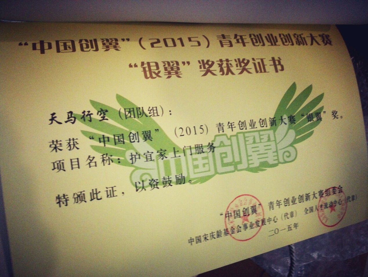 在相关领导的精心指导下,辅导员的悉心呵护下,参赛团队凭借扎实的基本功、过硬的专业素养、灵活机变的发挥、富有创意的产品设计,经过来自西南地区云贵川三省22支团队的激烈角逐,鸭脖学生队伍的参赛项目《护宜家上门服务》荣获“中国创翼”(2015)青年创业创新大赛“银翼奖”。