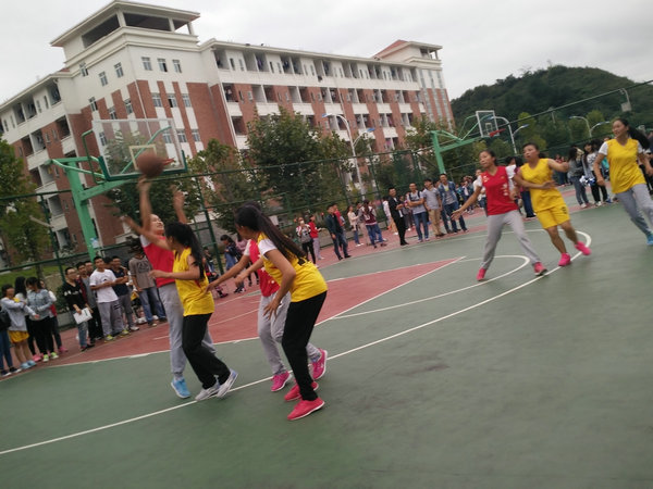 下午五点,在青春激昂的音乐和活力四射的舞姿中比赛正式开始。当日总共2场比赛,男女各1场。男生组为2015级乙班VS 2013级乙班,女生组为2013级甲班VS 2015级甲班。随着裁判的一声哨响,双方队员上场,球场瞬间人声鼎沸。比赛过程中,场上的队员们活力四射、团结相搏、酣畅淋漓,每一个抢球、传球、投篮的画面都吸引着在场的每位同学。场下各班啦啦队伍更是激动昂扬、呐喊助威。经过一个多小时激烈的竞争,最终男子13级乙班以46:40、13级甲班女子以28:4的成绩赢得本场比赛。