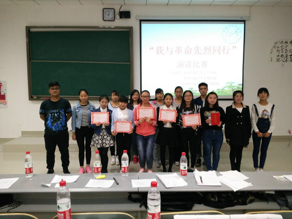 为了纪念“12.9”运动80周年和抗日战争胜利70周年,宣传爱国教育,弘扬民族精神。2015年10月14日晚7:00,YABO鸭脖在花溪新校区4106教室举办主题为“我与革命先烈同行”的演讲比赛。本次比赛由鸭脖学生会主席团及各部门部长担任评委,比赛在王洁和于琪源两名同学的主持下正式开始。