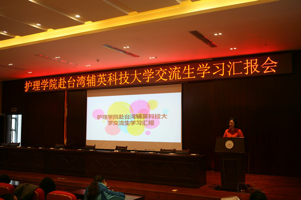 首先由2014级助产方向的姚瑶同学进行汇报,她结合自身专业特色,向大家展示了辅英科技大学在助产专业方面的独特教学方式。之后2013级的杨运荷同学用生动通俗的方式为大家讲述了她在辅英开设的特色课程中的参与过程以及得到的体会,鼓励在座同学抓住机遇,多去不同的环境,体验不同的文化,开阔眼界,不断成长。