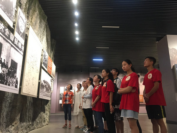接受红色革命精神的洗礼后,师生们步行前往红军山。在党旗和纪念碑的见证下,由杨英副书记领誓,组织党员同学重温入党誓词,坚定理想信念和为党的事业奋斗终身的决心。随后,全体同学进行默哀仪式,表达对革命先烈的哀思,并献上自制的花束及纸鹤。最后,杨英副书记对本次社会实践活动进行总结。她首先赞扬了同学们在本次社会实践中表现出来的积极与主动,对师生们两天的辛勤付出表示肯定。同时也对同学们提出了一些要求,希望大家在社会实践中不仅要学会将理论与实践相结合,服务群众;也要学会与人沟通,培养互助精神,锻炼情商,提高综合素质;更希望大家在今后的学习和工作中谨记长征精神,取得更大进步。至此,本次暑期社会实践活动圆满结束。