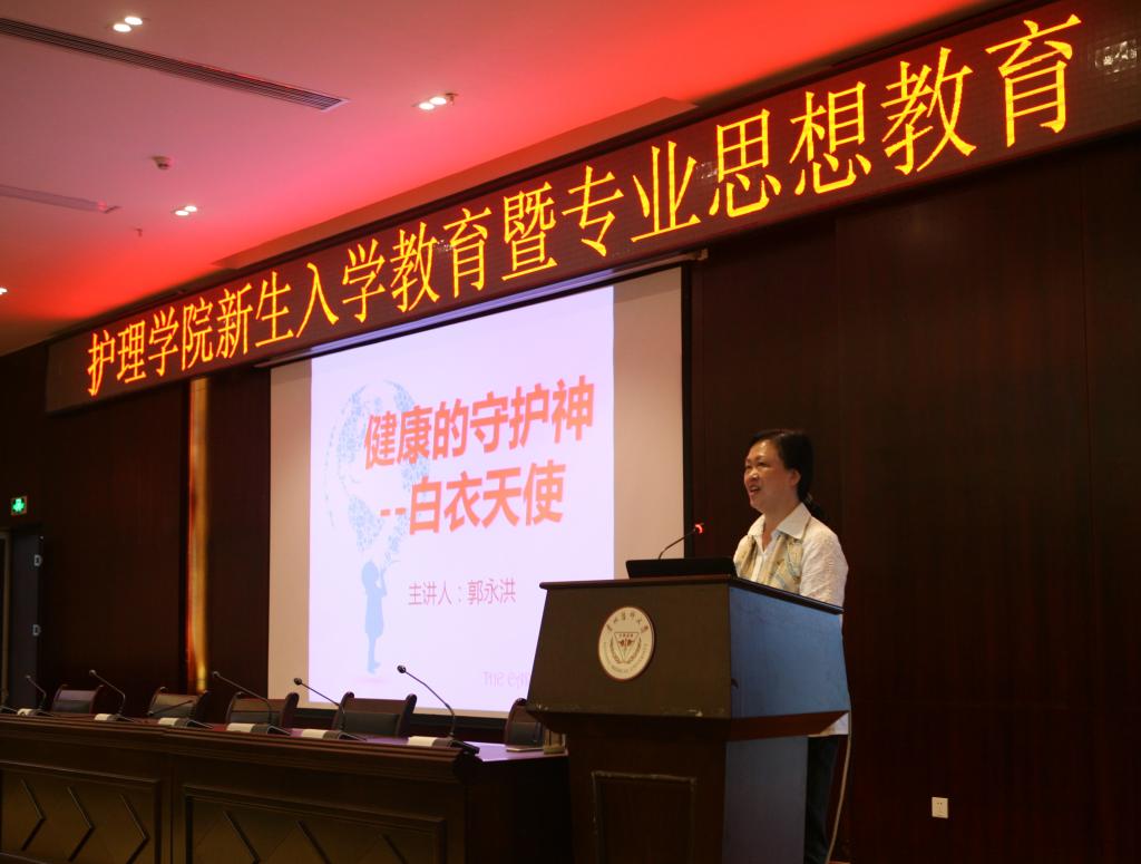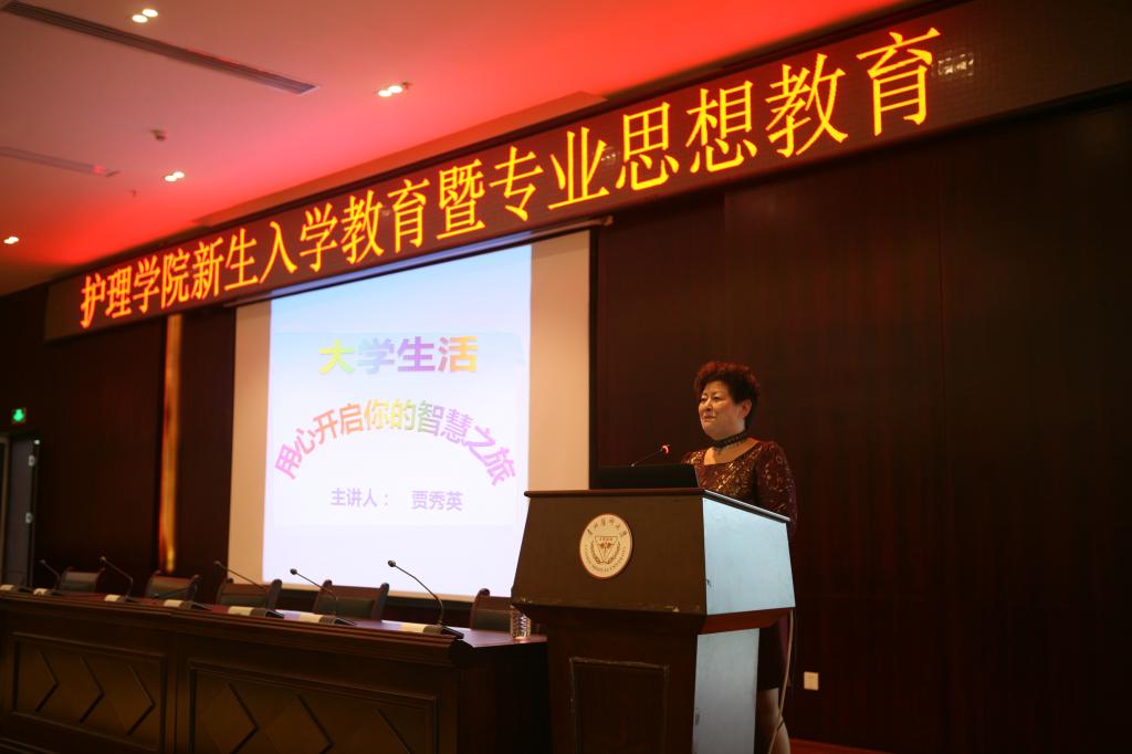 贾秀英老师从大学生如何实现角色转变,如何战胜自我,如何适应大学生活养成自主学习习惯等方面给同学们做了精彩讲授,郭永洪老师从如何给护理专业定位,如何在大学中学好专业知识成为一名合格的护理人才,以及护理的就业前景给同学们进行了全面的讲解。