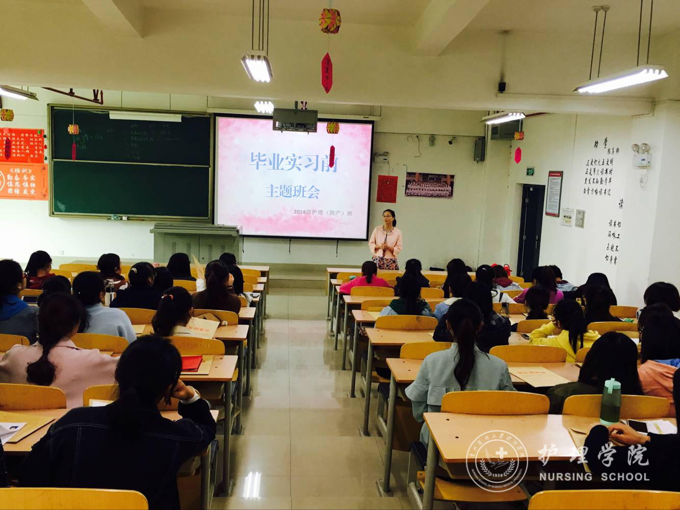 4月12日,YABO鸭脖在北校区4401教室毕业实习前主题班会, 2014级护理学(助产)专业的班主任徐锟老师主持了此次班会, 2014级护理学(助产)的全体同学参加。