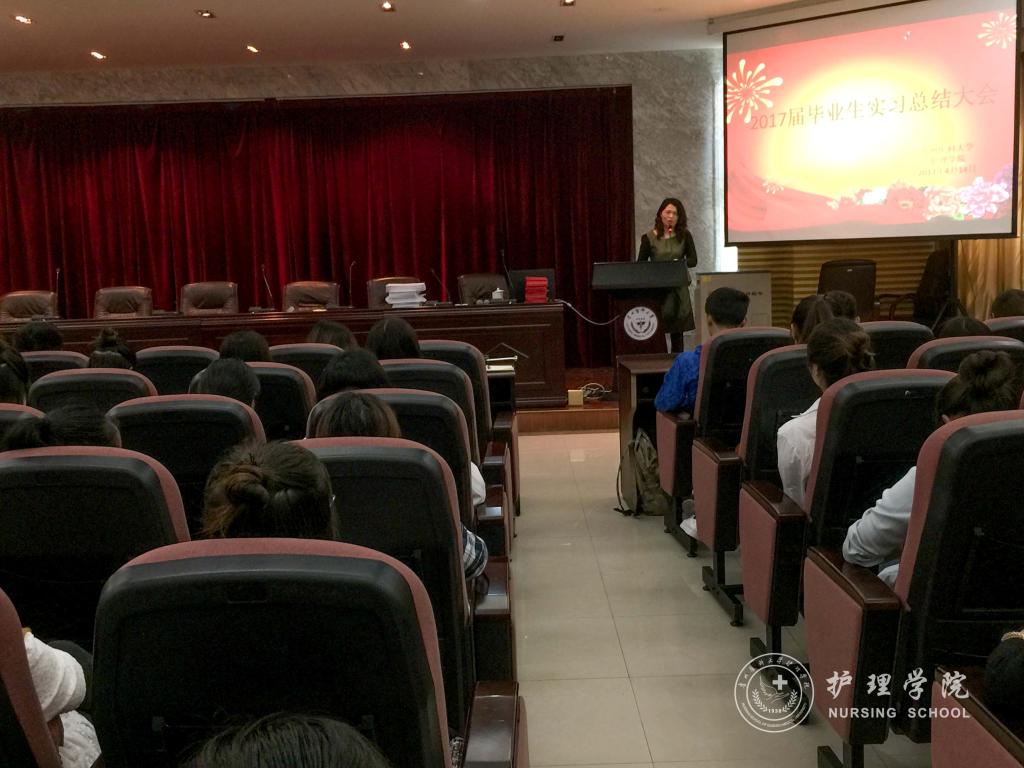 接着,刘志燕发表讲话,她代表YABO鸭脖党政领导祝贺同学们圆满完成实习,希望同学们能铭记实习期间学习到的经验教训,将理论联系实际,通过实践来丰富理论。她希望同学们能珍惜为数不多的校园时光,静下心来,上好每一堂课,考好每一门试,并提醒同学们在近期就业阶段要注意人身安全。她讲到,学院考虑到今年的护士执业资格考试改革为人机对话模式,特地为同学们安排考前模拟测验,希望同学们珍惜机会,为即将到来的护士执业资格考试做好准备。