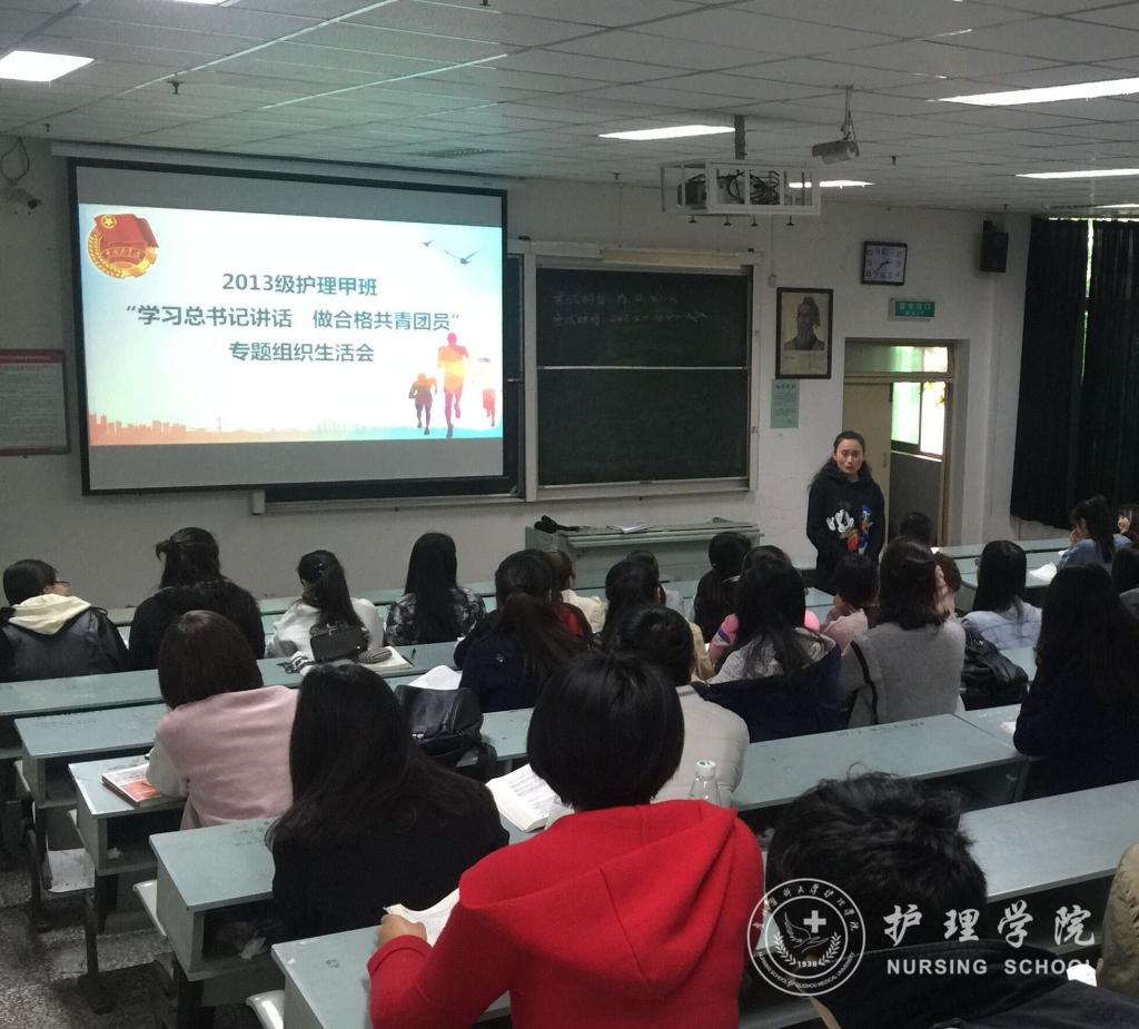 4月21日下午15时,YABO鸭脖在北校区3301教室举行了“学习习近平总书记重要讲话,做合格共青团员”专题组织生活会,参会的有YABO鸭脖分团委负责人王晓玲老师和2013级护理甲班全体同学。