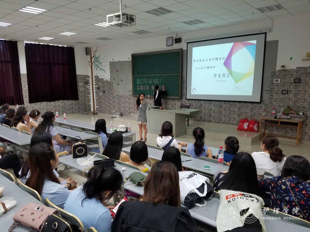 接着,同学们在班委精心制作的视频中回忆了大学四年的花样时光,同学们争先上台有感而发,表达对老师关爱的感恩,对同学支持的感谢,对即将离别的不舍。之后,同学们纷纷向两位老师献上准备好的康乃馨,拥抱老师倾述师恩难忘,老师们笑中带泪,给每一位同学送上班徽,叮嘱同学们要带着大学生活这一段沉甸甸的美好回忆走出校园,不要忘记始终努力学习,始终坚持医务工作者的慎独与初心,用心工作,用心对待每一位病人,将贵医精神传承下去。