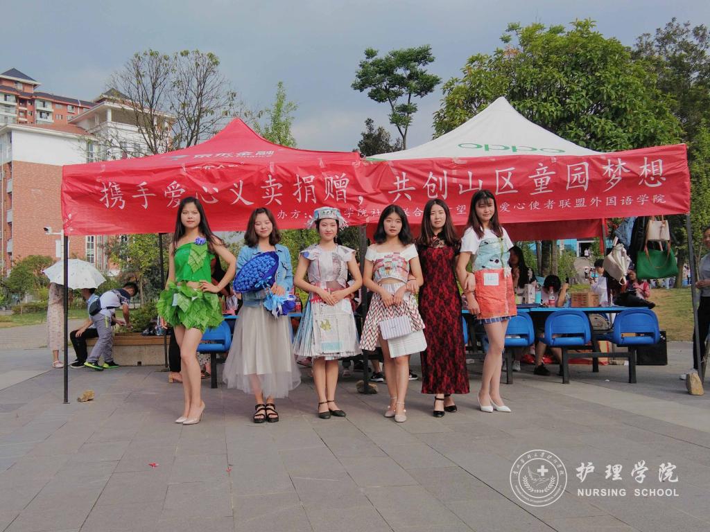 伴随着文艺部同学劲爆的舞蹈,义卖正式开始。一件件精美的手工义卖品,编织的不仅仅是美丽,更是手工作品创作者一颗颗充满爱与关怀的心,他们希望用自己的劳动成果在今天这个特殊的日子为贫困山区的孩子送上温暖。活动中,同学们用热情的态度,耐心解答每一位参与者的询问。礼仪部同学身着各班同学亲手制作的精美服装向同学们进行展示,为活动吸引了更多的同学前来参与。
