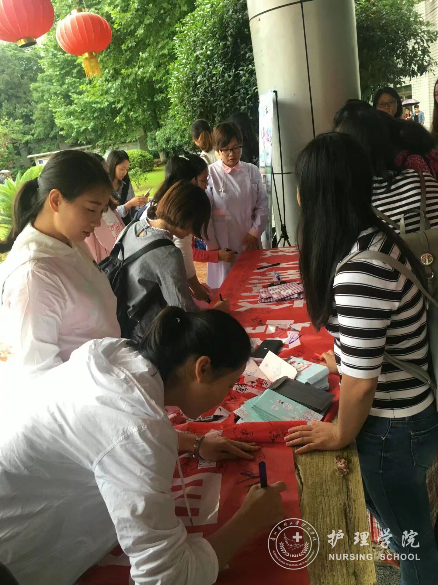 活动一开始,就吸引了许多捐献物品的同学,大家纷纷将自己的爱心留下,希望毕业班党支部的同学一起将大家的物品捐献给贫困地区的儿童们,为孩子们送去一份温暖。接着,毕业班的同学们留下了文明离校的承诺,在横幅上郑重的签下了自己的名字,一句句深情的话语,一个个郑重的签名,都代表着毕业生对母校依依不舍的离别情怀。