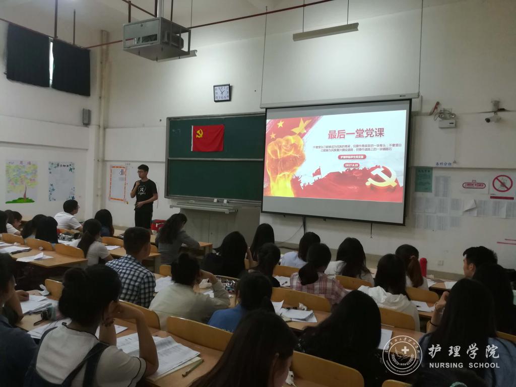 为了贯彻我校毕业生文明离校工作,鼓励毕业生积极投身社会,加强对毕业生党员的持续教育, 6月25日中午12:00,鸭脖学生党支部于北校区4101教室为2017届毕业生党员开展了“不忘初心 勇往前行”为主题的最后一堂党课。党课由学生第二党支部书记王晓玲老师主持,学生第一党支部书记李颖老师、辅导员马景瑶老师以及全体毕业生党员参加了本次党课。