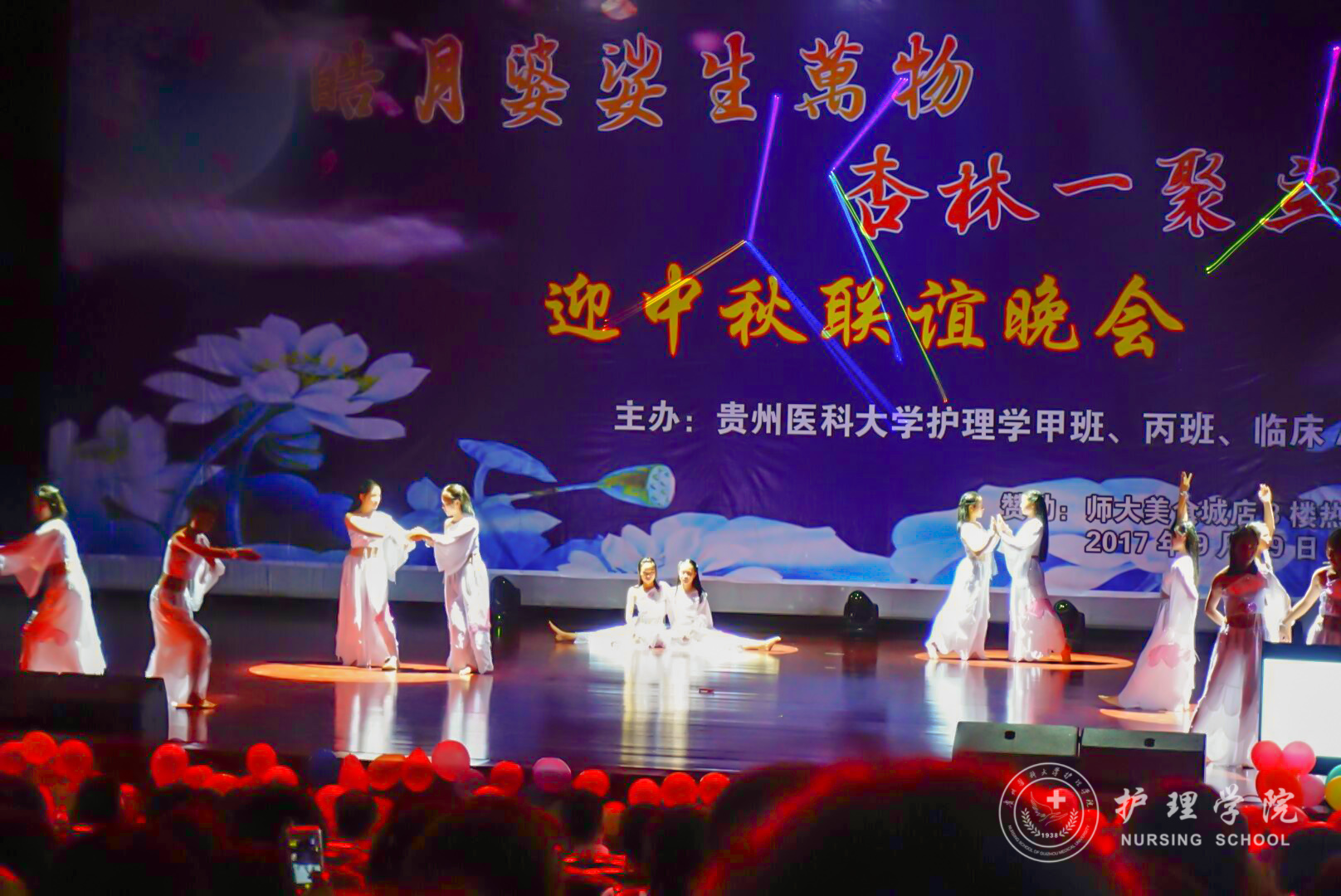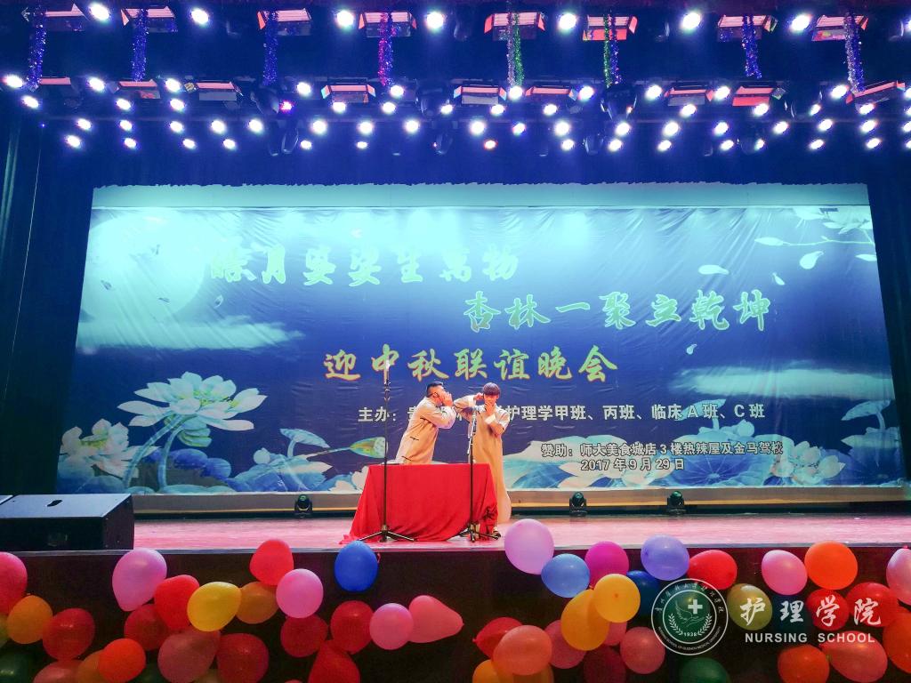 为了增强同学间的友谊,提高集体意识。9月29日晚上,YABO鸭脖2017级甲班、丙班在花溪校区礼堂与2017级临床A班、C班共同举行了“皓月婆娑生万物,杏林一聚立乾坤”迎中秋联谊晚会。本次晚会邀请了外国语学院何晓涛老师、心理健康中心彭彪老师、基础医学院辅导员苗建峰老师、YABO鸭脖辅导员王晓玲、毕丽、李颖和马景瑶老师以及老生代表参加。晚会由2017级护理甲班杨一城、崔玉琪、临床A班唐永豪、封雪晴四位同学主持。