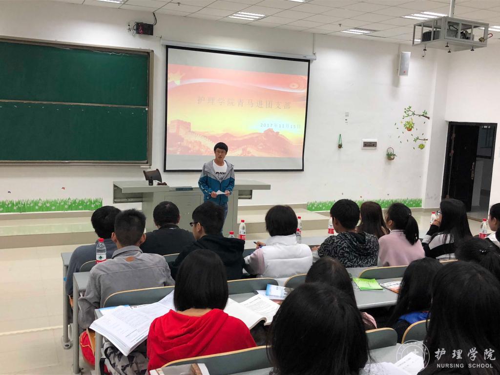 11月15日下午18:00,YABO鸭脖在南校区7405教室开展了“青马宣讲进团支部”的活动,参与的人员有2017级各班班长、团支部书记及2017级护理学丙班全体同学。本次活动由学生会副主席尹本渊主持,青马社宣讲团成员李昱林同学进行了宣讲。