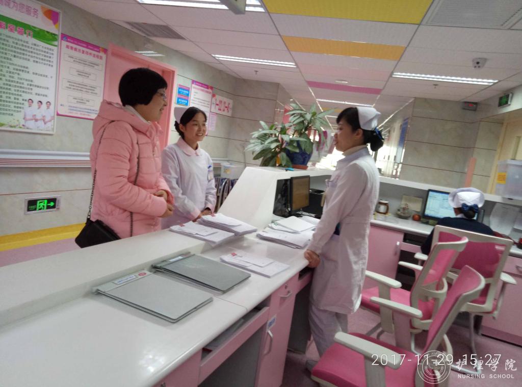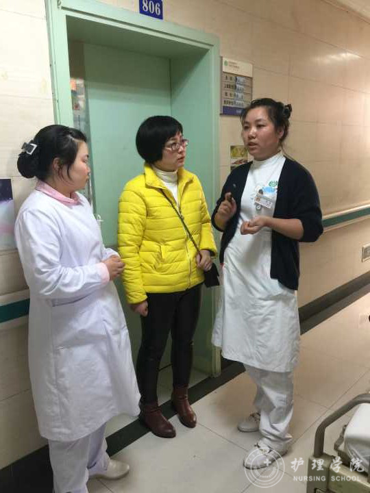 在医院实习生组长的陪同下,分别走访了肿瘤医院护理部、胸部肿瘤科、外科二病区和妇幼保健院妇科乳腺外科、妇科内分泌不孕症科等临床科室,毕业班辅导员与走访科室的护士长、带教老师、实习同学深入交谈,从不同层次了解实习教学、学生管理以及专业操作中存在的问题。通过交流了解,鸭脖实习生在附属医院的表现得到了充分肯定,受到好评。
