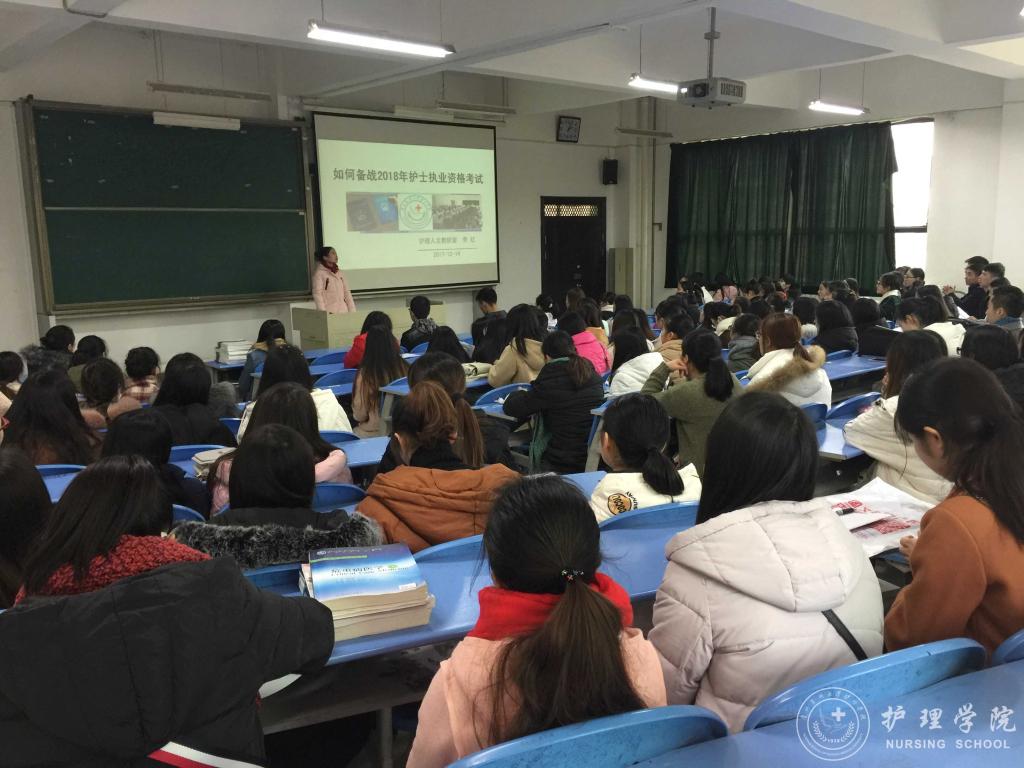 2017年12月14日下午,YABO鸭脖在北校区2402教室召开了“2018年护士执业资格考试培训会”,本次培训会分为“2018护考题型分析”、“护士执业资格考试报名相关事宜培训”和“实习生恳谈会”三个部分,YABO鸭脖副院长刘志燕、生产实习科科长柳忠燕、护理学专业教师李红和2014级全体护理实习生参会,会议由学生科科长曾敏主持。