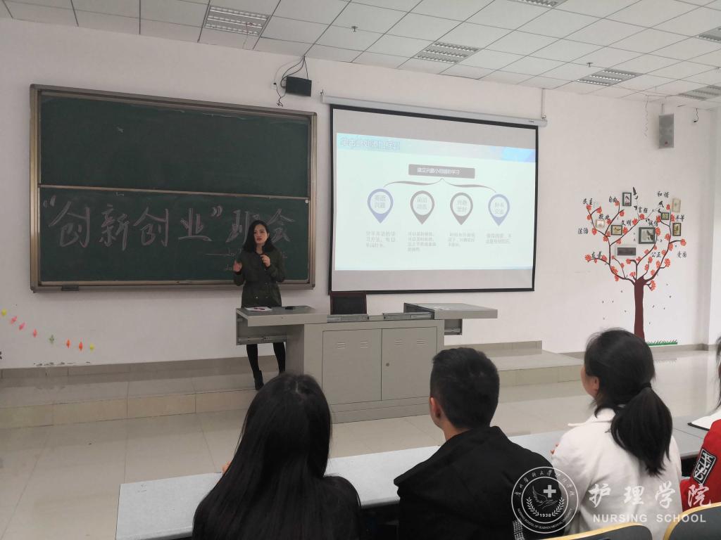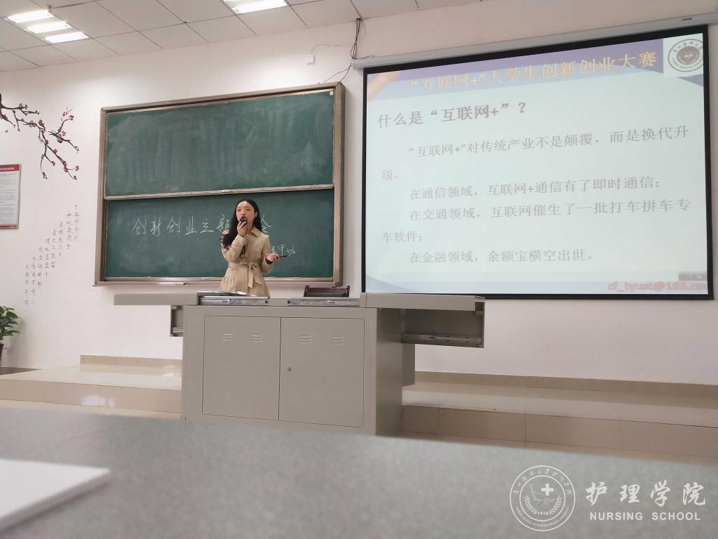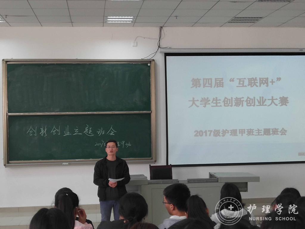 王晓玲、马景瑶分别解读了国家对大学生创新创业的支持政策、学校的大学生创新创业大赛通知、学校对大学生创新创业的激励政策、YABO鸭脖学生在历年创新创业大赛活动中的获奖情况等,使广大新生对创新创业有了一个基本的了解。王晓玲、马景瑶鼓励同学们在认真完成专业学习的基础上积极参加创新创业活动,在创新创业中增长智慧才干,在艰苦奋斗中锤炼意志品质,在服务社会中成就人生价值。接着,由班主任吴俊、王丽、李宇分别在2017级护理学甲班、乙班、丙班以第四届“互联网+”大学生创新创业大赛为主题进行了专题讲授。班主任老师分别从大赛主题、参赛内容、准备方法等方面具体介绍了大学生创新创业大赛,激发同学们参与的意识。